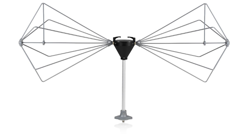 线性极化的 R&S®HK116E 双锥形天线可在 20 MHz 至 300 MHz 的频率范围内进行宽带发射和接收。天线设计精密,特别适合场强和 EMI 测量。尽管天线主要用于在实验室中进行干扰测量,但也可用于外场测试,并能承受适度的天气条件和低风速。